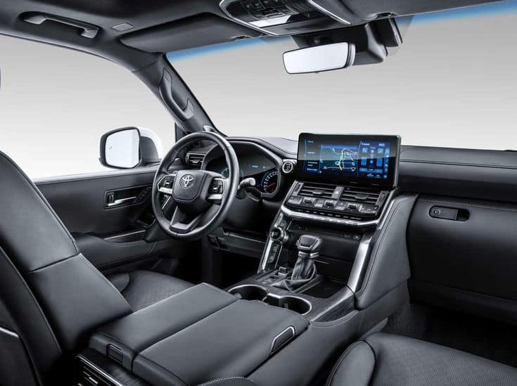 The Land Cruiser typically offers seating for 7 passengers. The front seats are powered, ventilated, and heated in higher trims. Rear passengers enjoy ample legroom and climate control options.